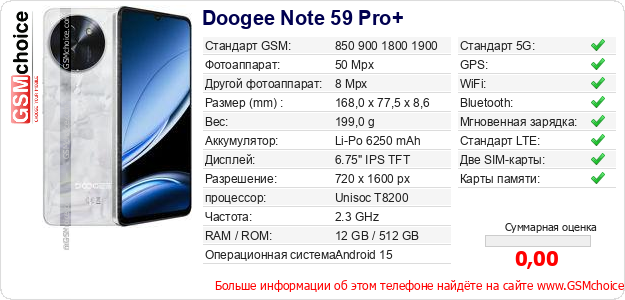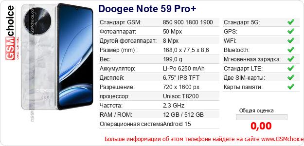 Данные о телефоне Doogee Note 59 Pro+ на Вашем сайте