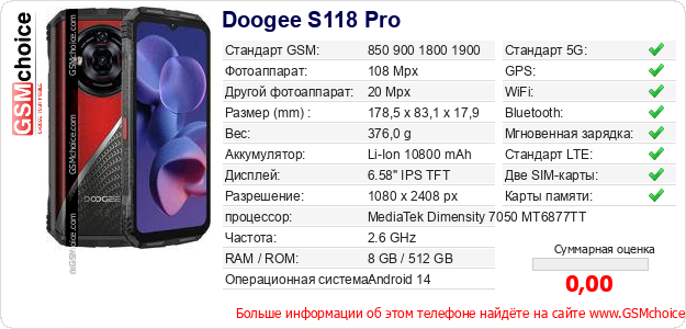 Данные о телефоне Doogee S118 Pro на Вашем сайте