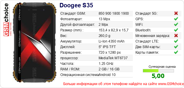 Данные о телефоне Doogee S35 на Вашем сайте