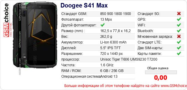 Данные о телефоне Doogee S41 Max на Вашем сайте