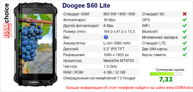 Данные о телефоне Doogee S60 Lite на Вашем сайте