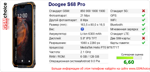 Данные о телефоне Doogee S68 Pro на Вашем сайте