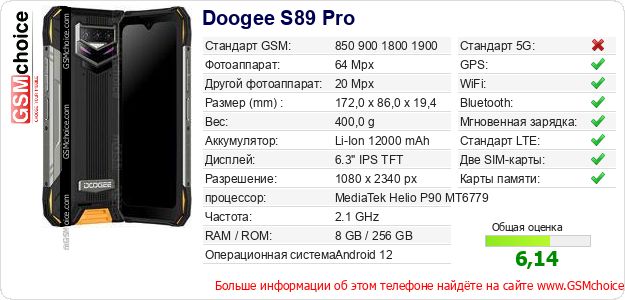 Данные о телефоне Doogee S89 Pro на Вашем сайте