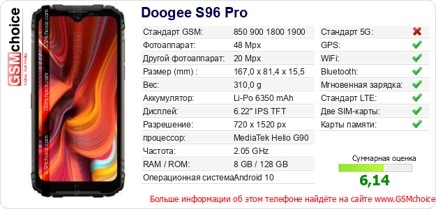 Данные о телефоне Doogee S96 Pro на Вашем сайте