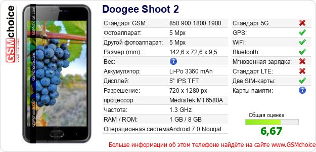 Данные о телефоне Doogee Shoot 2 на Вашем сайте