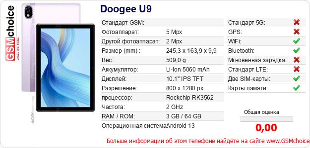 Данные о телефоне Doogee U9 на Вашем сайте