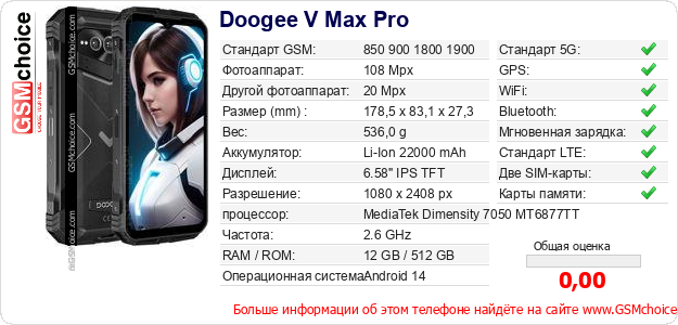 Данные о телефоне Doogee V Max Pro на Вашем сайте