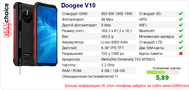 У Тебя есть свой сайт? Хочешь где-то разместить информацию о базовых данных мобильника Doogee V10 ? Это запросто устроить. Достаточно скачать картинку или скопировать и разместить на соответствующем сайте нижерасположенный код:Размещение этого кода вызовет появление нижерасположенной картинки: