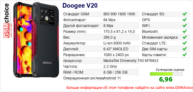 Данные о телефоне Doogee V20 на Вашем сайте
