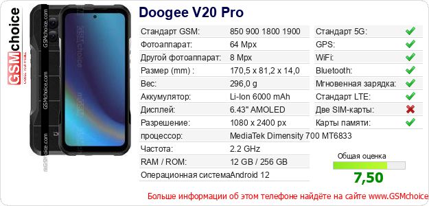 Данные о телефоне Doogee V20 Pro на Вашем сайте