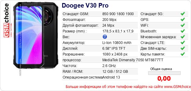 Данные о телефоне Doogee V30 Pro на Вашем сайте
