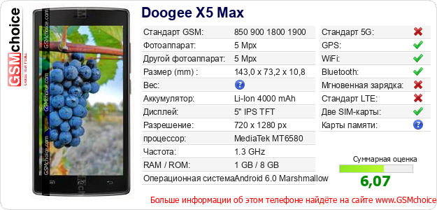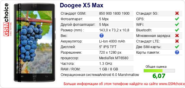 Данные о телефоне Doogee X5 Max на Вашем сайте