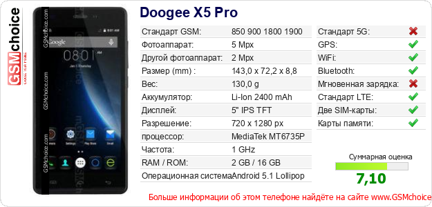 Данные о телефоне Doogee X5 Pro на Вашем сайте