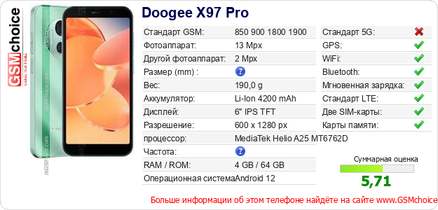 Данные о телефоне Doogee X97 Pro на Вашем сайте