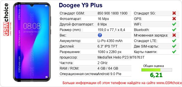 Данные о телефоне Doogee Y9 Plus на Вашем сайте