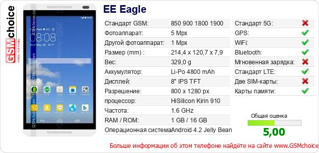 У Тебя есть свой сайт? Хочешь где-то разместить информацию о базовых данных мобильника EE Eagle ? Это запросто устроить. Достаточно скачать картинку или скопировать и разместить на соответствующем сайте нижерасположенный код:Размещение этого кода вызовет появление нижерасположенной картинки: