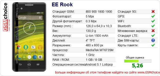 Данные о телефоне EE Rook на Вашем сайте