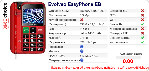 Данные о телефоне Evolveo EasyPhone EB на Вашем сайте