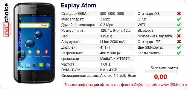 Данные о телефоне Explay Atom на Вашем сайте