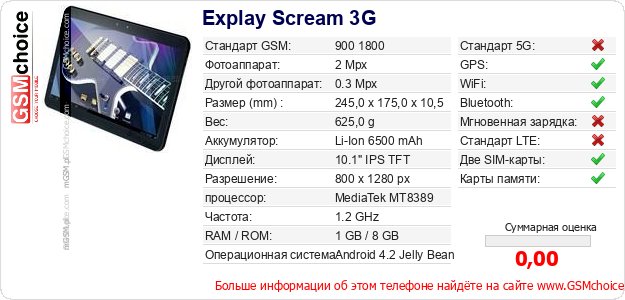 Данные о телефоне Explay Scream 3G на Вашем сайте