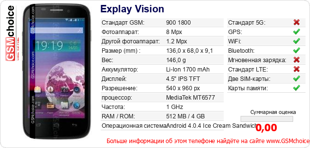 У Тебя есть свой сайт? Хочешь где-то разместить информацию о базовых данных мобильника Explay Vision ? Это запросто устроить. Достаточно скачать картинку или скопировать и разместить на соответствующем сайте нижерасположенный код:Размещение этого кода вызовет появление нижерасположенной картинки: