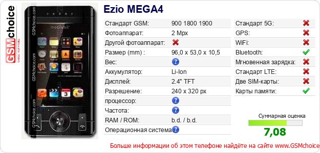 Данные о телефоне Ezio MEGA4 на Вашем сайте