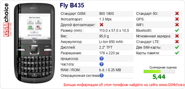 Данные о телефоне Fly B435 на Вашем сайте
