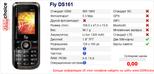 Данные о телефоне Fly DS161 на Вашем сайте
