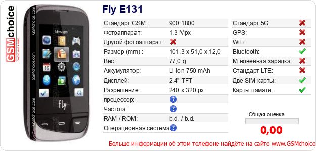 Данные о телефоне Fly E131 на Вашем сайте