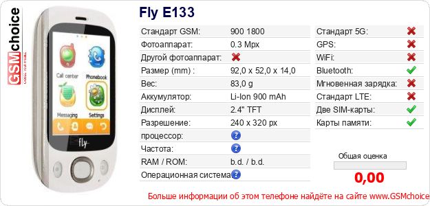 Данные о телефоне Fly E133 на Вашем сайте