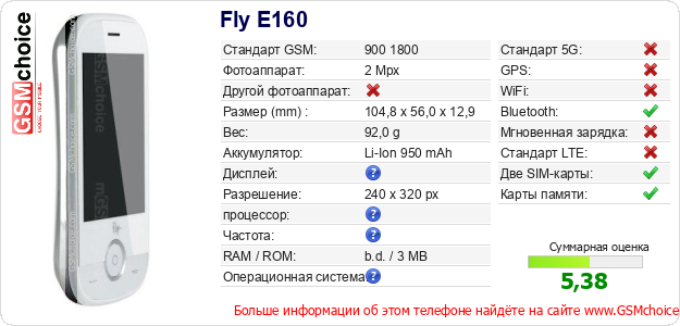 Данные о телефоне Fly E160 на Вашем сайте