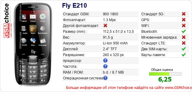 Данные о телефоне Fly E210 на Вашем сайте