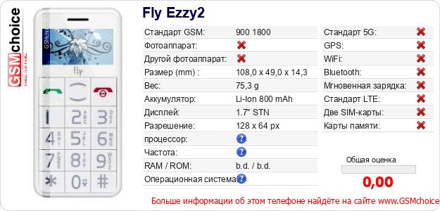 Данные о телефоне Fly Ezzy2 на Вашем сайте