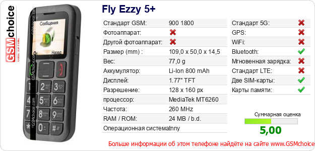 Данные о телефоне Fly Ezzy 5+ на Вашем сайте
