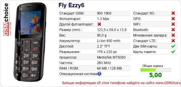 Данные о телефоне Fly Ezzy6 на Вашем сайте
