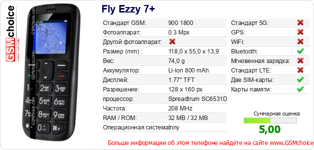 Данные о телефоне Fly Ezzy 7+ на Вашем сайте
