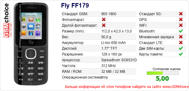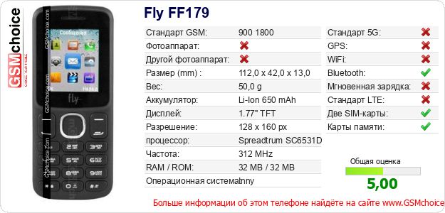У Тебя есть свой сайт? Хочешь где-то разместить информацию о базовых данных мобильника Fly FF179 ? Это запросто устроить. Достаточно скачать картинку или скопировать и разместить на соответствующем сайте нижерасположенный код:Размещение этого кода вызовет появление нижерасположенной картинки: