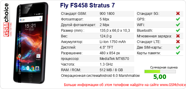 Данные о телефоне Fly FS458 Stratus 7 на Вашем сайте