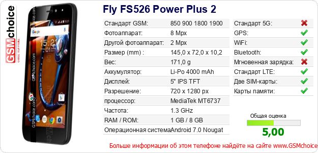 Данные о телефоне Fly FS526 Power Plus 2 на Вашем сайте