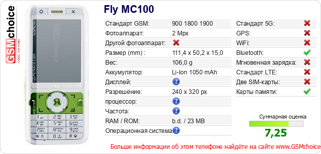 Данные о телефоне Fly MC100 на Вашем сайте