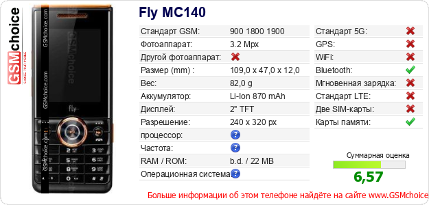 Данные о телефоне Fly MC140 на Вашем сайте