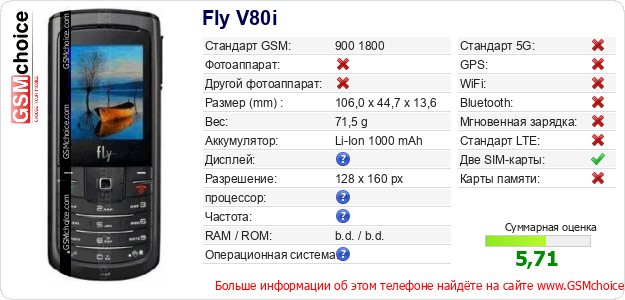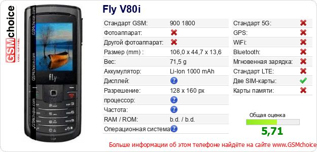 Данные о телефоне Fly V80i на Вашем сайте