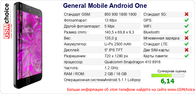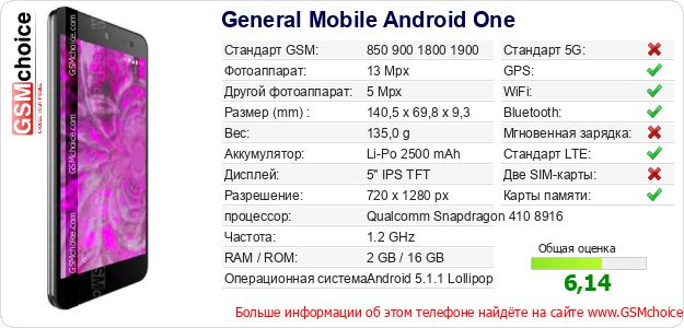 Данные о телефоне General Mobile Android One на Вашем сайте