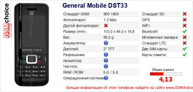 Данные о телефоне General Mobile DST33 на Вашем сайте