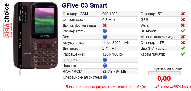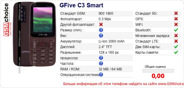 Данные о телефоне GFive C3 Smart на Вашем сайте