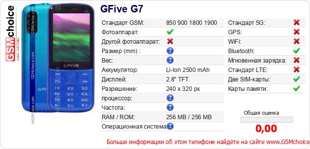 Данные о телефоне GFive G7 на Вашем сайте