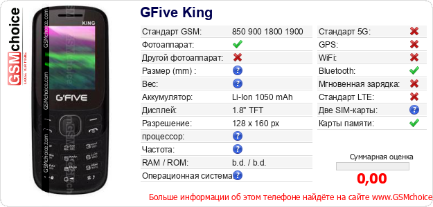 Данные о телефоне GFive King на Вашем сайте