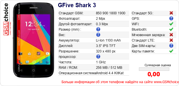 Данные о телефоне GFive Shark 3 на Вашем сайте