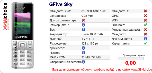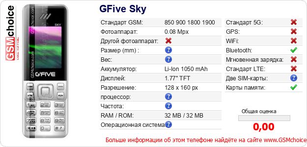 Данные о телефоне GFive Sky на Вашем сайте