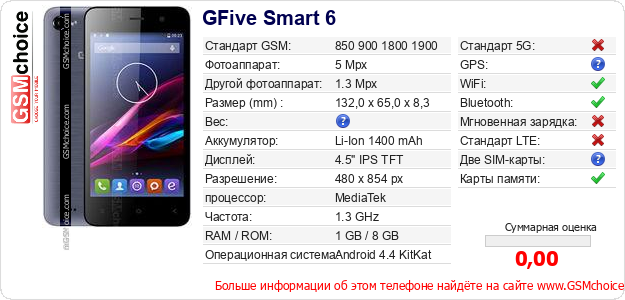 Данные о телефоне GFive Smart 6 на Вашем сайте